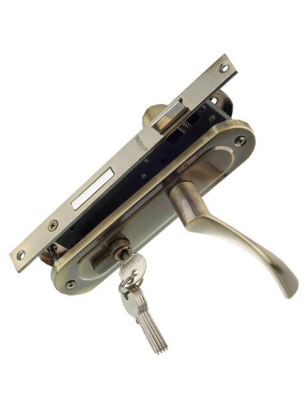 Замок врезной Trodos, 70-L/76 AB, 202094, ручка в комплекте, цилиндровый, бронзовый