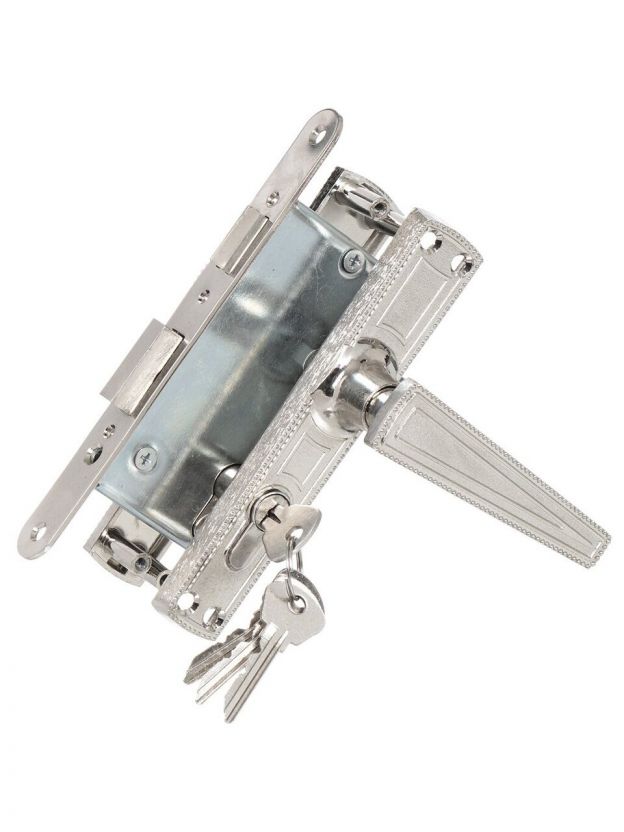 Замок врезной Зенит, ЗВ4-3, 00-00009036, ручка в комплекте, цилиндровый, универсальный, никель