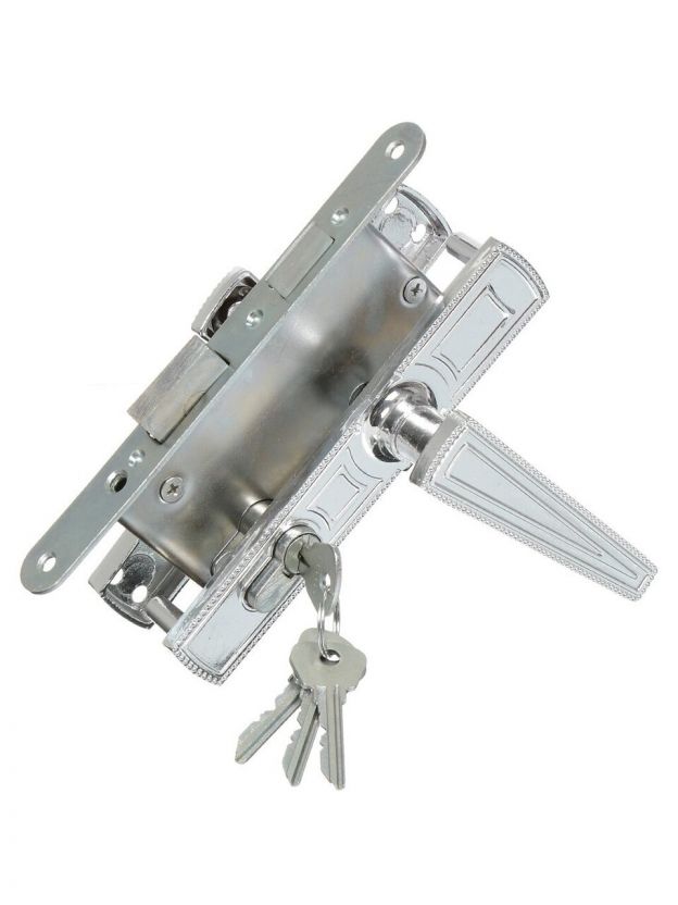 Замок врезной Зенит, ЗВ4-3.01, 00-00000456, ручка в комплекте, цилиндровый, хром
