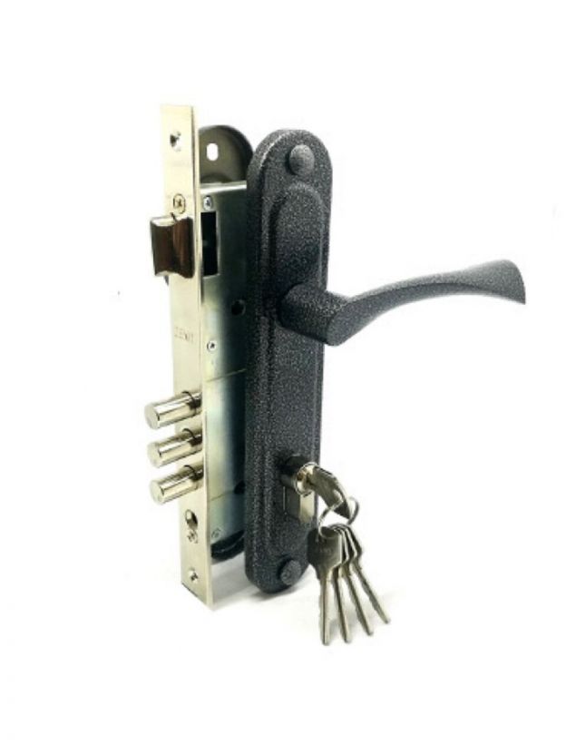 Комплектность: Замок -1 шт, МЦ - 1 шт, Ключ - 5 шт, Планка запорная - 1 шт, Комплект крепежа.