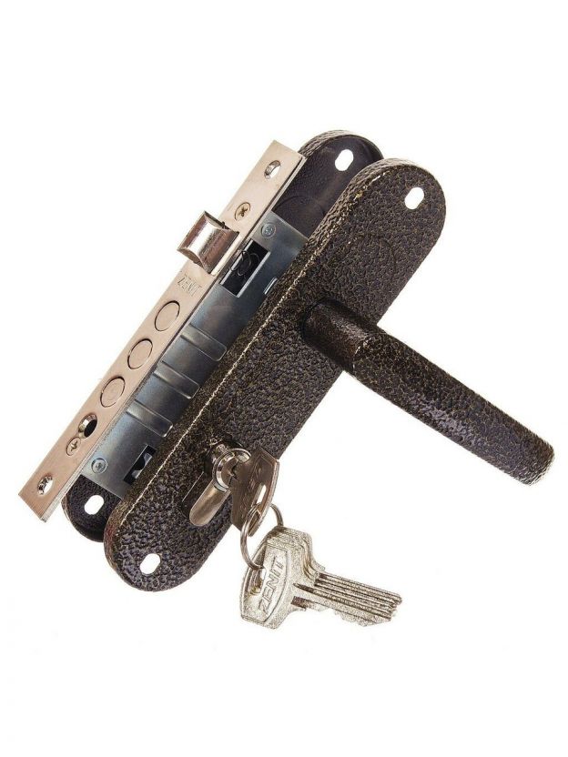 Замок врезной Зенит, ЗВ7-60.1-02, БП-00010133, ручка в комплекте, цилиндровый, бронзовый