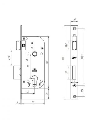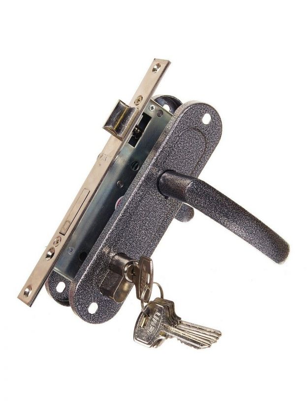 Замок врезной с защелкой 2 класса универсальный, предназначен для установки на левые и правые двери толщиной 35-45мм. Межосевое расстояние 70мм, удаление ключевого отверстия 40мм. Комплектуется ручками на стяжках, ответной планкой и цилиндровым механизмом типа МЦ1-5 70мм с пятью английскими ключами.