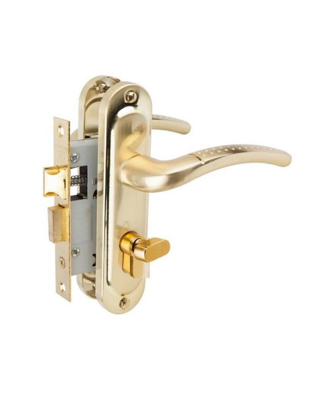 Замок врезной защелка, Vrata, 50/106-ЦМ70, 210302, ручка в комплекте, цилиндровый, матовое золото