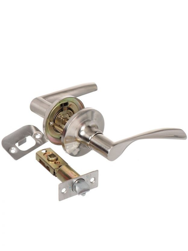 При повороте рычага происходит блокировка не самой защелки, а только ручки, это позволяет открыть замок ключом, не прибегая к демонтажу кнобы.