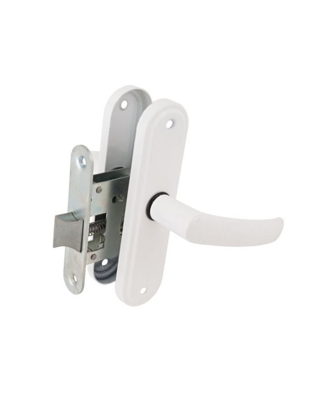 Защелка врезная с ручками. Предназначена для установки в деревянные двери толщиной до 45мм, правого и левого открывания. Стальной корпус, покрыт гальваническим покрытием. Удаление ключевого отверстия 45мм. Материал ручек алюминиевый сплав.