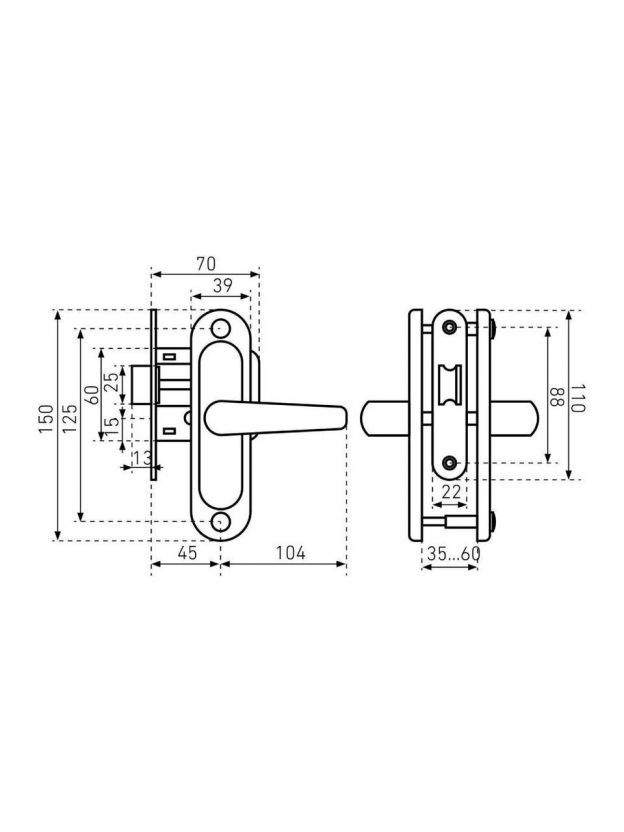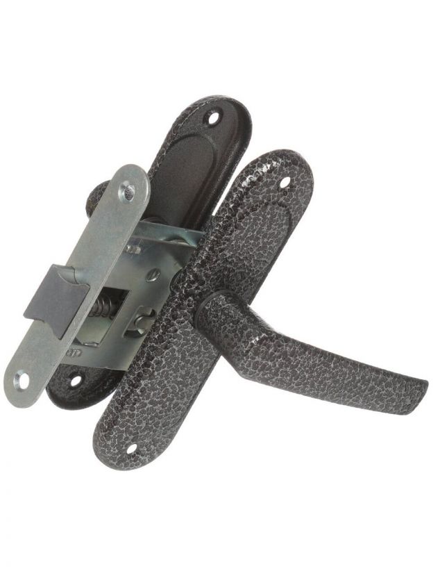Комплектность: защелка врезная, планка запорная, шуруп (4х25), стержень, ручки фалевые.