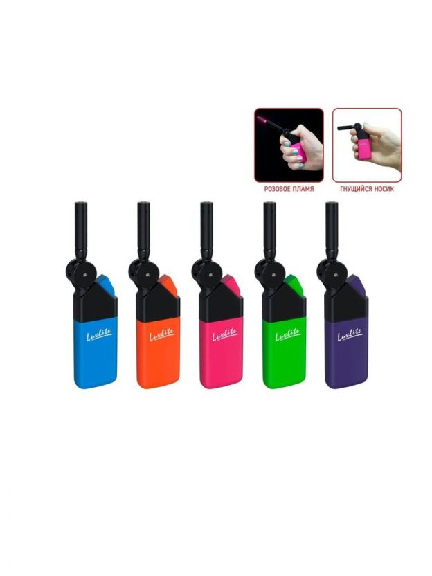 Зажигалка бытовая пьезо, Luxlite, 580 HC5 RUBBER SP, в ассортименте, 00646