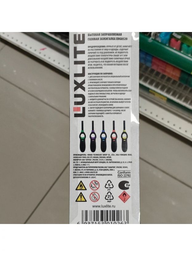 Зажигалка бытовая пьезо, Luxlite, Порядок 8520 Black, в ассортименте, 4315