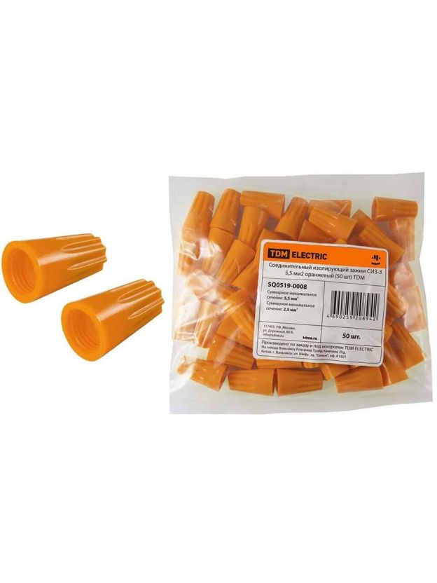Зажим СИЗ-3, соединительный, изолирующий, оранжевый, 50 шт, 5.5 мм2, TDM Electric, SQ0519-0008
