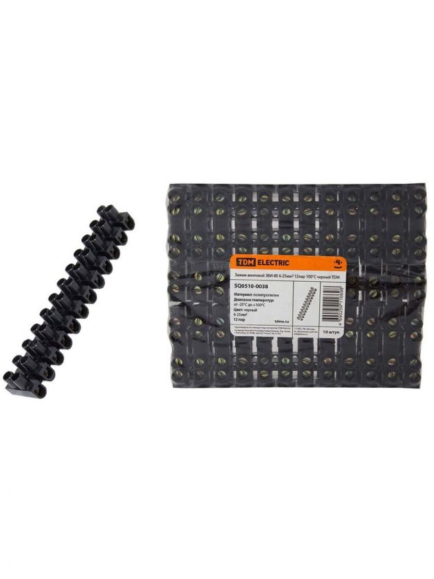 Зажим ЗВИ-80, винтовой, полипропилен, черный, 12 пар, 100°С, 6-25 мм2, TDM Electric, SQ0510-0038