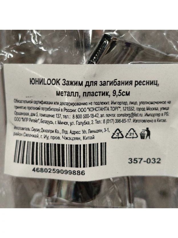 Зажим для ресниц ЮНИLOOK — идеальный аксессуар для создания выразительного изгиба ресниц. Стильный дизайн, компактный размер 9.5 см и удобство использования делают его незаменимым инструментом для домашнего ухода. Металлический корпус с элементами из пластика обеспечивает надежность и легкость.