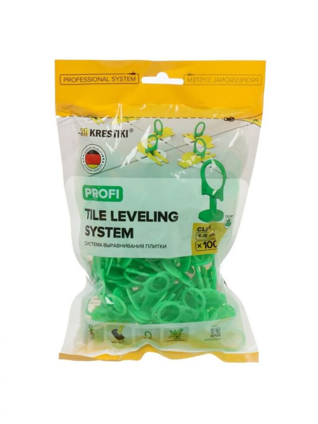 Зажим для выравнивания плитки 1.5 мм, 100 шт, СВП, зеленый, Profi, 3D Krestiki, К00006582
