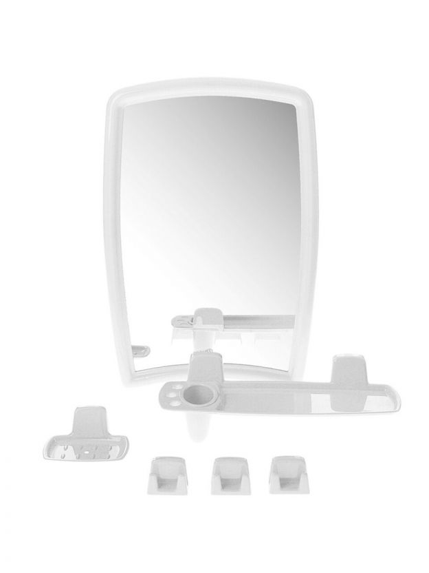 С небольшим набором Berossi 41 в ванной комнате воцарится теплая, душевная атмосфера. Прямоугольное зеркало заключено в обрамление сложной формы, благодаря чему выглядит эффектно и неизбито. Помимо него в комплект входят такие необходимые предметы, как: