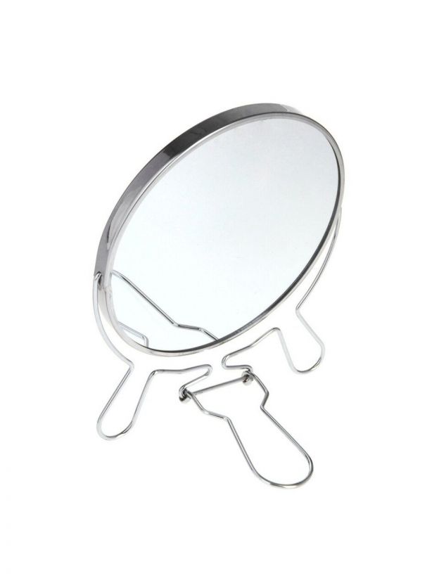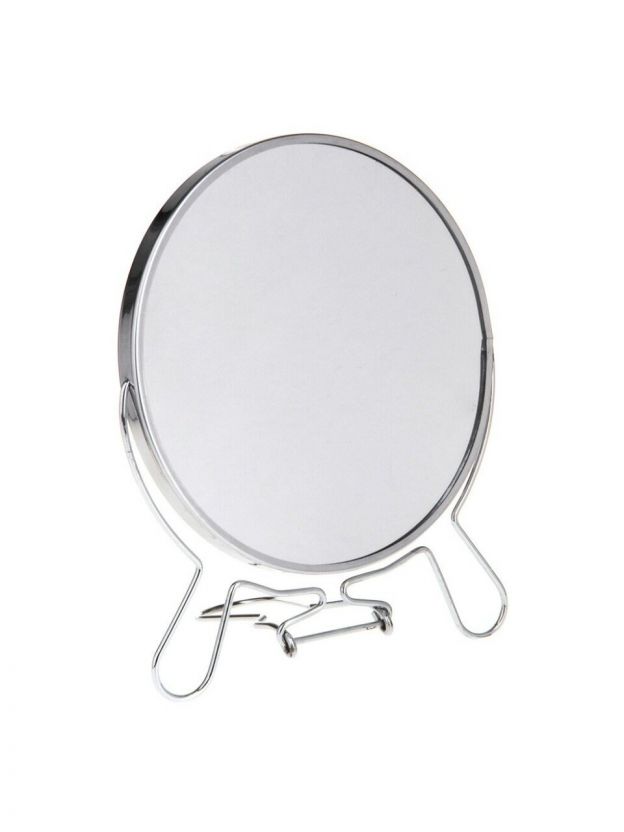Зеркало настольное ЮниLook 14,5 см: идеальный обзор для макияжа и ухода, двустороннее увеличение, сталь и стекло — удобно дома и в поездках.