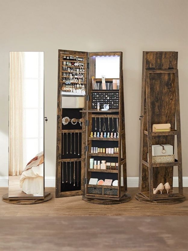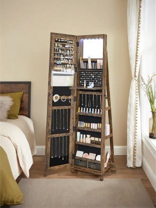 Больше никакого беспорядка: этот шкаф для украшений «все в одном» — то, что вам нужно, чтобы все упорядочить. Благодаря большому шкафу, зеркалу, полке и выдвижному ящику в нем есть все, что вам нужно, в одном месте, что максимально увеличивает пространство для хранения и экономит время.