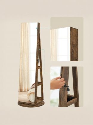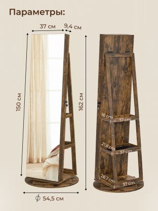 Зеркало-стеллаж напольное, ДСП+сталь, 54.5х54.5х162 см, коричневое, Songmics, Лофт, JJC007X01