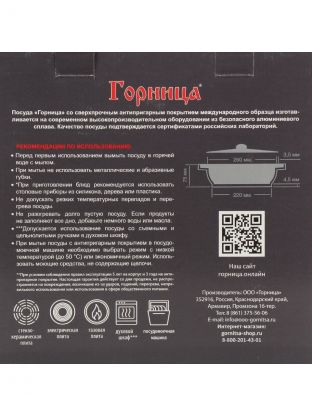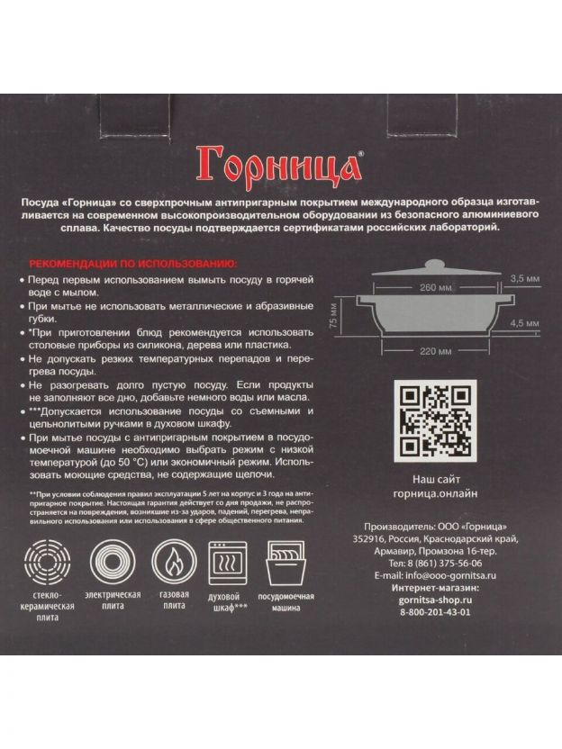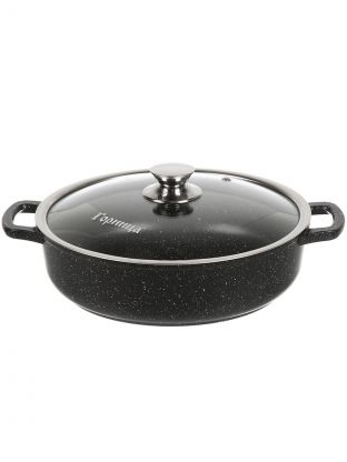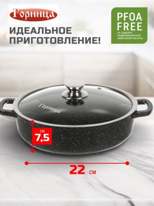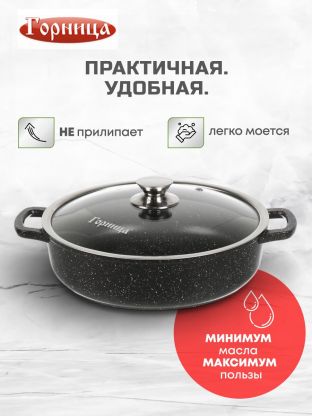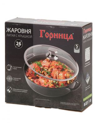 В отличие от обычных алюминиевых или стальных жаровен, модель «Горница Гранит» не требует большого количества масла, а пища не пристает даже при минимальном нагреве. Как выбрать жаровню для дачи или дома? Обратите внимание на универсальность: эта посуда подходит для газовых, электрических и стеклокерамических плит, а также для духовки. Крышка в комплекте сохраняет сочность блюд, а отсутствие съемной ручки делает жаровню более надежной и долговечной.