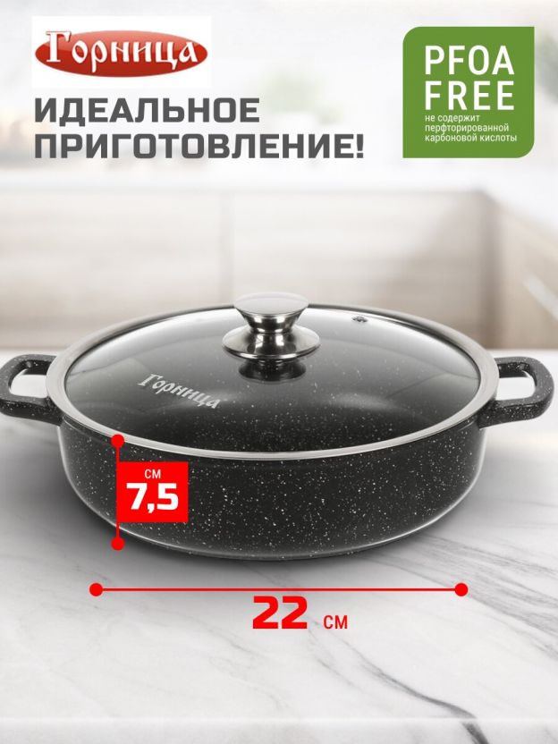Жаровня алюминиевая 26 см, 3 л, антипригарное покрытие «Горница Гранит» — идеальный выбор для семьи: жарьте, тушите, запекайте без пригорания и лишнего масла.