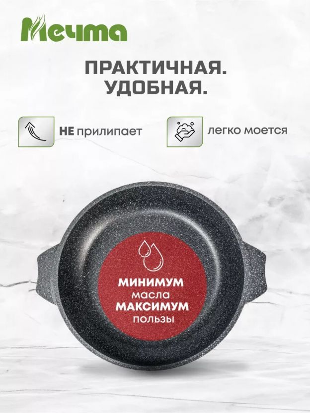 Жаровня Гранит — это специальный вид посуды для приготовления мяса, рыбы, птицы и овощей. Но именно в ней, в отличие от сковородок и противней, ваши любимые мясные блюда получатся очень нежными с хрустящей корочкой. В комплекте с жаровней Гранит идет стеклянная крышка, так как под крышкой продукты более равномерно пропекаются, и она препятствует чрезмерному испарению жидкости. Кастрюля - жаровня гранит из литого высококачественного пищевого алюминия «Мечта» станет незаменимым инструментом и надежным помощником на вашей кухне.