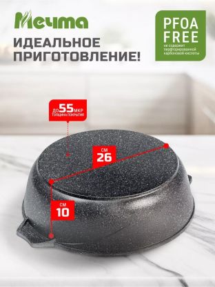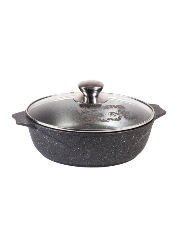 Жаровня Гранит — это специальный вид посуды для приготовления мяса, рыбы, птицы и овощей. Но именно в ней, в отличие от сковородок и противней, ваши любимые мясные блюда получатся очень нежными с хрустящей корочкой. В комплекте с жаровней Гранит идет стеклянная крышка, так как под крышкой продукты более равномерно пропекаются, и она препятствует чрезмерному испарению жидкости. Кастрюля - жаровня гранит из литого высококачественного пищевого алюминия «Мечта» станет незаменимым инструментом и надежным помощником на вашей кухне.