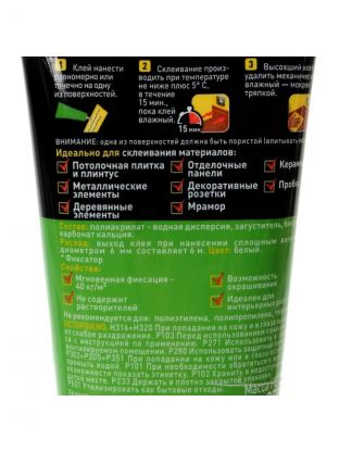 Момент FIX Эксперт не содержит органических растворителей. Идеально подходит для склеивания различных строительных и отделочных материалов.