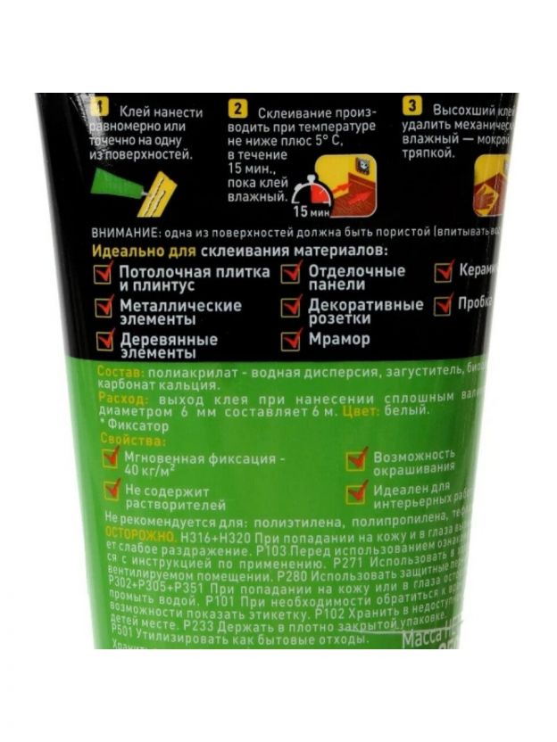 Жидкие гвозди Момент FIX - это надежный и универсальный клей, который подходит для использования в различных сферах, включая строительство, ремонт и производство. Он позволяет быстро и просто скреплять элементы конструкций, обеспечивая высокую прочность и долговечность соединения.