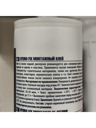 Общестроительный прозрачный клей на водной основе. Предназначен для интерьерных работ, при склеивании пористых материалов, подходит и для наружных работ. Характеризуется хорошей адгезией к пористым поверхностям (древесина, камень, керамика, бетон) и пластикам (твердый ПВХ, пенополистирол, пенополиуретан).