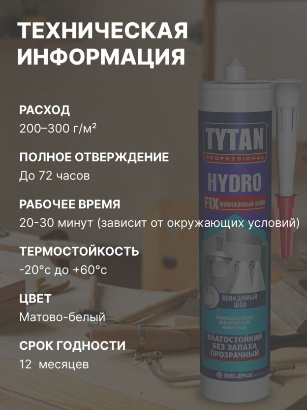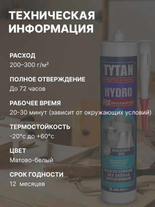 Жидкие гвозди Tytan, Hydro fix, 310 мл, универсальные, 96184