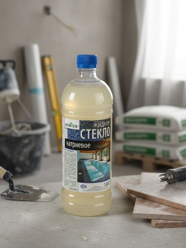 Жидкое стекло 1.3 кг, натриевое, Ecolux