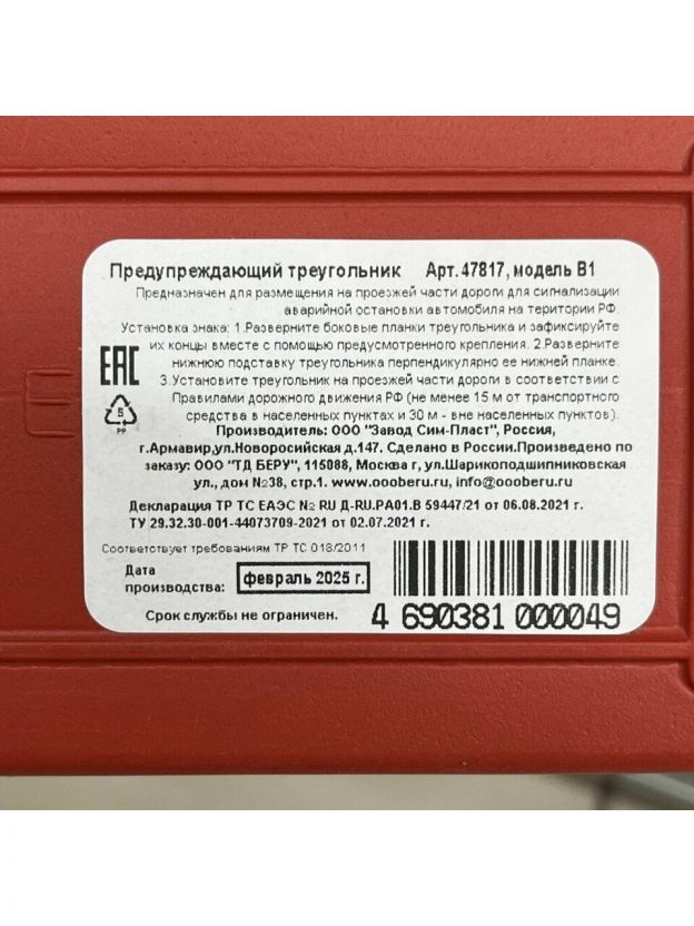 Правильно установленный знак аварийной установки – это, прежде всего, залог вашей безопасности. Другие участники движения заранее заметят стоящий транспорт, что даст время на совершение маневра. Это классическая модель знака аварийной остановки, которая отвечает необходимым стандартам различных стран.