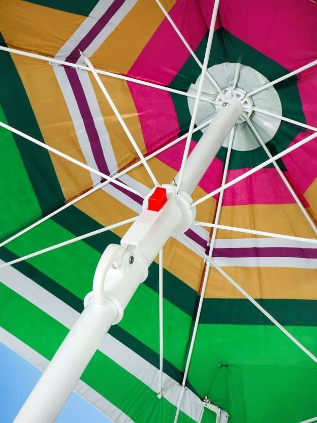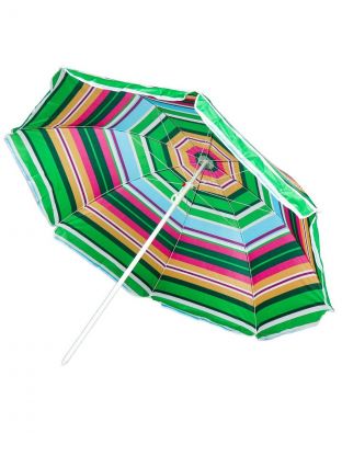 Зонт изготовлен из полиэстера и крепится к стальной стойке. Эстетичный и легкий пляжный зонт станет приятным дополнением к Вашему отдыху. Этот яркий аксессуар оградит вас от вредных солнечных излучений и ожогов. Плотный материал и надежная конструкция прослужат вам не один сезон.