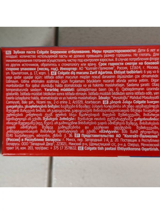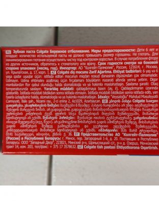 Со временем эмаль теряет свою естественную белизну. Colgate Зубная паста Бережное Отбеливание бережно удаляет потемнения с поверхности зубов, восстанавливая их естественную белизну, и не повреждая зубную эмаль, а также укрепляет эмаль зубов и защищает от кариеса. Благодаря этому вы можете каждый день радовать себя и своих близких ослепительной улыбкой.