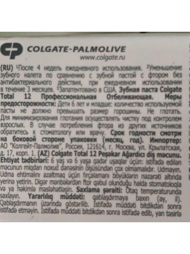 Зубная паста Colgate, Total 12 Профессиональная Отбеливающая, 75 мл