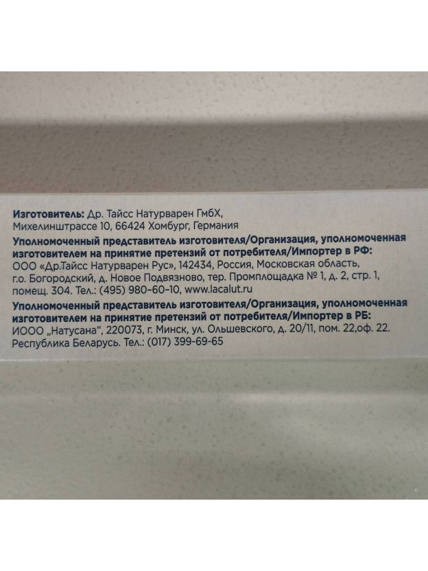 Свою историю стоматологическая торговая марка "Lacalut" ведет с начала 20-х годов XX века. Высочайшее качество и эффективность обеспечили ей признание у специалистов и популярность у потребителей более 50 стран мира, и по праву считается лидером среди лечебно-профилактических средств гигиены полости рта. Название "Lacalut" происходит от главного активного вещества – лактат алюминия. Лактат алюминия – это соль молочной кислоты, которая обладает ярко выраженным вяжущим и противовоспалительным действиями.