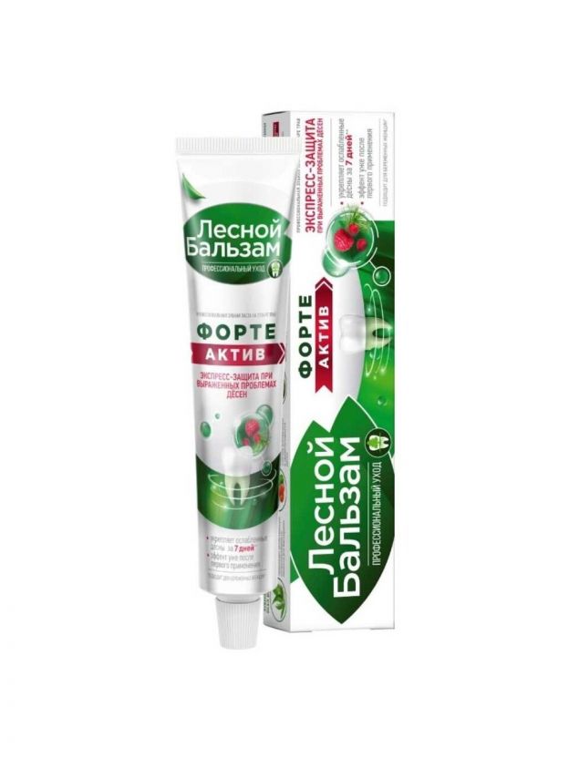 Профилактическая зубная паста Лесной бальзам на отваре трав способствует интенсивному питанию и укреплению десен. Она обладает иммуноактивным действием и в 2 раза улучшает работу собственного иммунитета полости рта, снижая риск развития проблем с деснами.