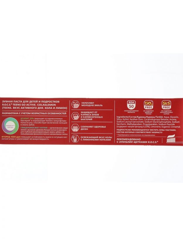 Зубная паста R.O.C.S. Teens, 74 г: свежесть колы и лимона для яркого дня, эффективная защита и уход за зубами подростков по выгодной цене