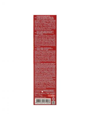 Тюбик содержит 74 г пасты — оптимальный формат для дома и поездок, легко помещается в косметичку или рюкзак.