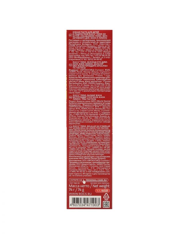 Покупайте зубную пасту R.O.C.S. Teens выгодно — оформите заказ онлайн и получите свежий продукт с гарантией качества от официального продавца.