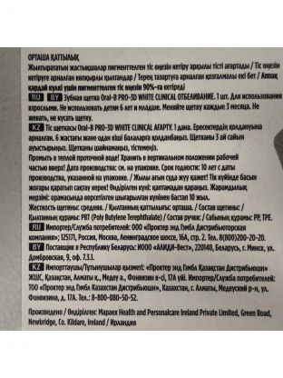 Откройте для себя идеальную чистоту и белизну с зубной щеткой Oral-B PRO3D White Clinical Отбеливание 38. Эта щетка создана для взрослых, стремящихся к безупречной улыбке. Преимущества: Две подвижные стороны для глубокой и бережной чистки. Резиновые полирующие подушечки удаляют пигментированный налет. Многогранные щетинки удаляют налет даже в труднодоступных местах. Зубная щетка Oral-B - это ваш верный помощник на пути к здоровой и сияющей улыбке.