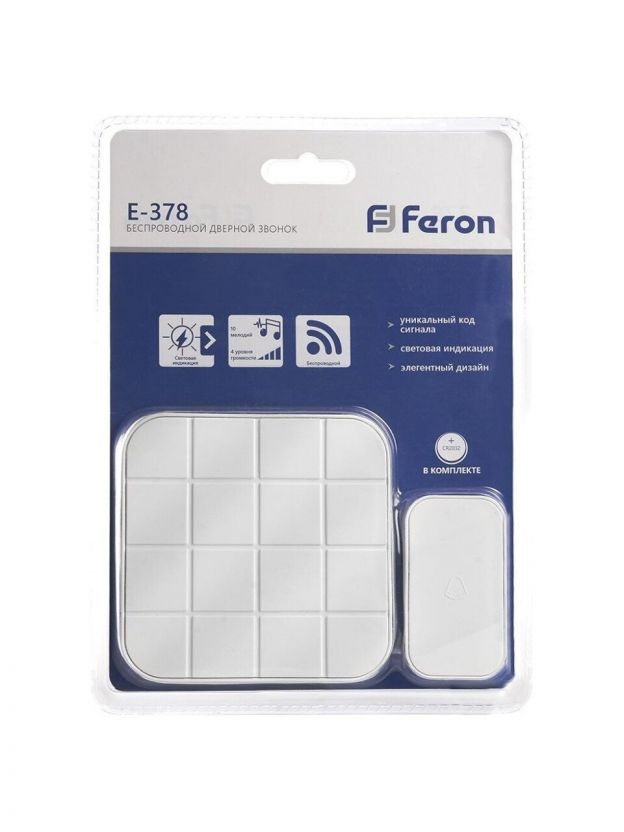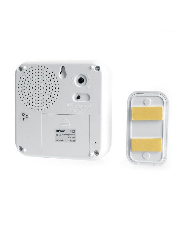 Звонок дверной беспроводной, на батарейках, 10 мелодий, кнопка IP 44, 3 х 1.5 В, АА, белый, Feron, Е378, 41434