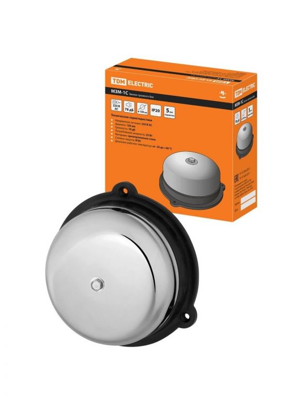 Звонок громкого боя, кнопка IP 20, диаметр 150 мм, 220 В, 25 Вт, 78 дБ, TDM Electric, МЗМ-1С, SQ1903-0008