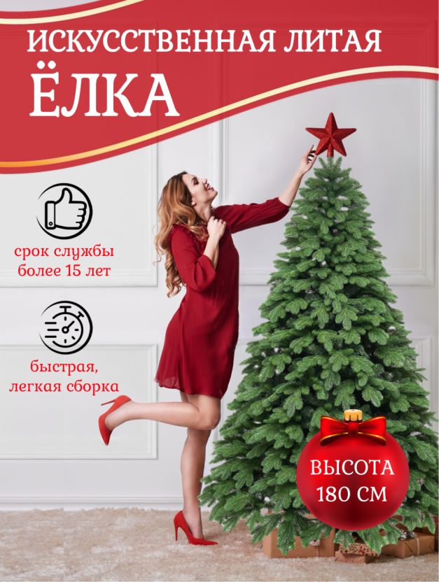 Елка новогодняя напольная 180 см Парижанка – премиальный выбор для стильного интерьера: густая хвоя, литая + ПВХ, 7 ярусов, сборка за 15 минут.