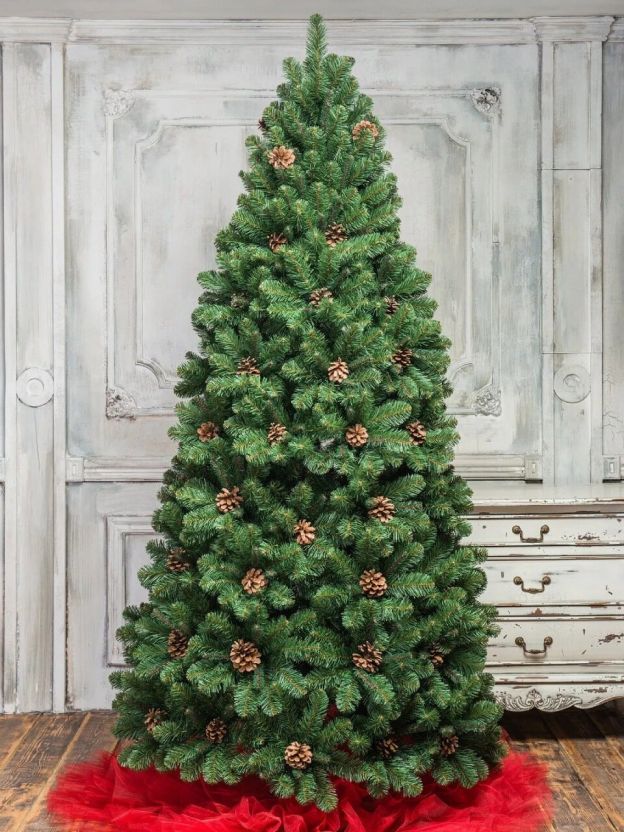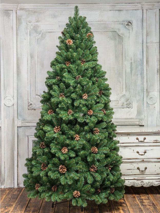 • Премиальный внешний вид: густая хвоя ПВХ, натуральные шишки, классическая форма, эффект настоящей ели
