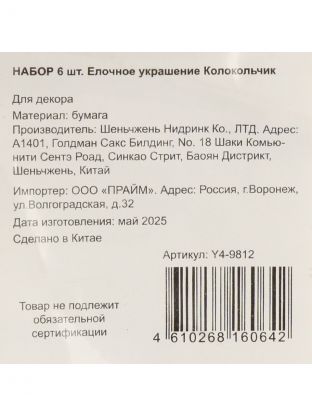 Выберите набор елочных украшений "Колокольчик" — закажите сейчас и получите стильный, безопасный декор по выгодной цене. Быстрая доставка и гарантия качества от проверенного продавца.
