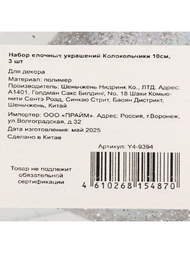 В отличие от стеклянных аналогов, полимерные елочные игрушки не трескаются при падении, а однотонный серебряный цвет легко сочетается с любым новогодним стилем. Часто спрашивают: подходит ли этот набор для подарка? Да, благодаря красивой коробке и универсальному дизайну, колокольчики станут отличным презентом для друзей и коллег. Как использовать: просто подвесьте украшения на елку с помощью готовой петли — крепление надежно фиксируется на ветке любого диаметра.