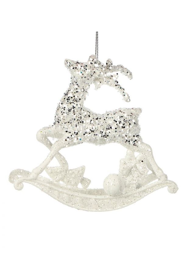 Елочное украшение Олень, белый с серебром, 11 см, пластик, Y4-9381