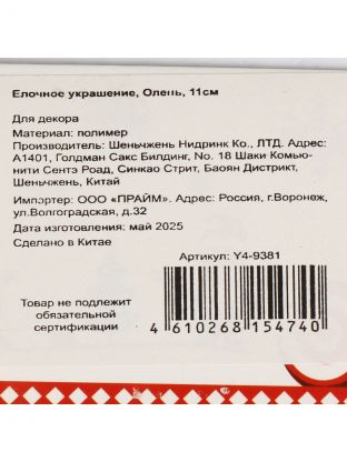 Добавьте в корзину елочное украшение "Олень" — получите стильный декор, который прослужит не один сезон. Оперативная доставка, гарантия соответствия описанию и выгодная цена для вашего праздника.