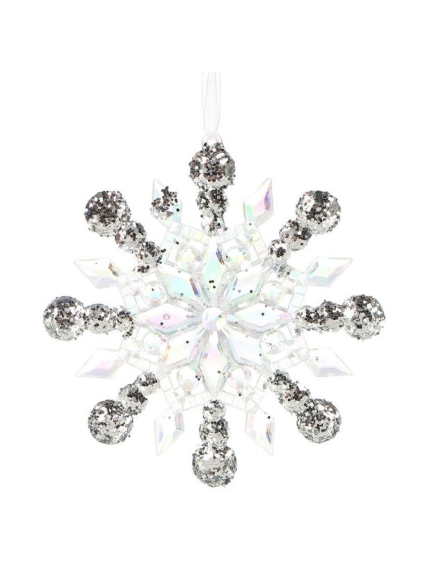 Елочное украшение Снежинка, прозрачный с серебром, 12 см, пластик, Y4-9498