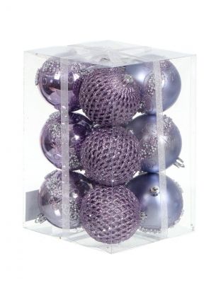 Елочный шар 12 шт, лавандовый, 8 см, пластик, SYQB-0121265