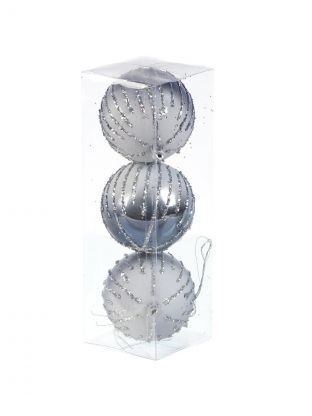 Елочный шар 3 шт, бело-голубой, 8 см, пластик, SYQB- 0124232